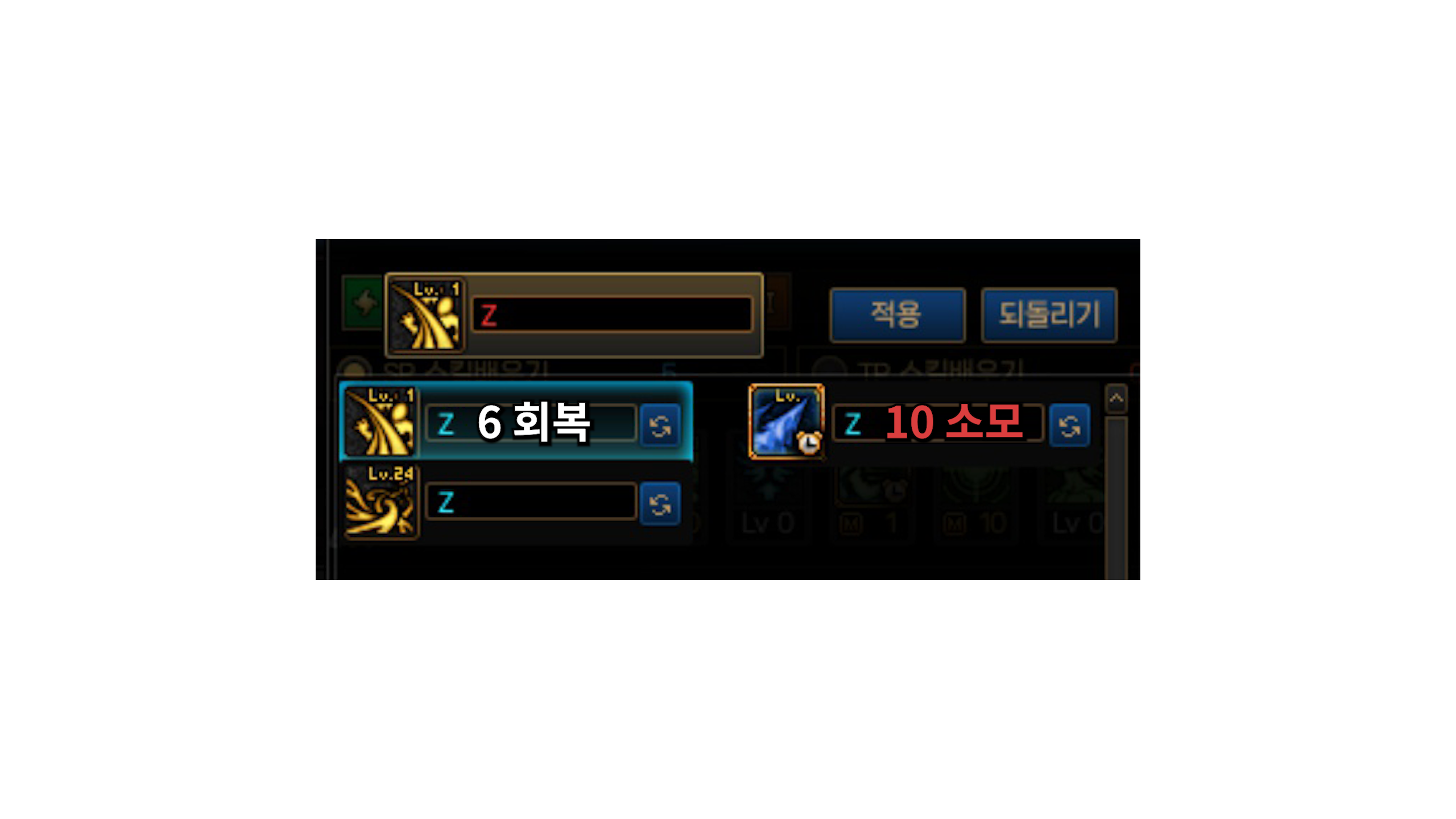 물론 이렇게 하면 저 레벨대 스킬이 먼저나가고