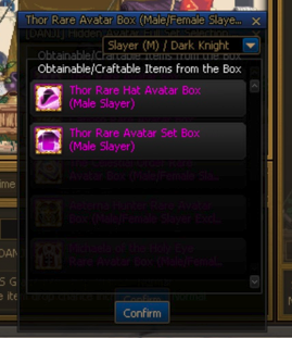 무기 아바타/ 크리쳐(슬롯 포함)/오라(슬롯포함)/클론 유니크 아바타 상자로 구성되어 있습니다.