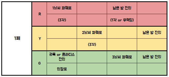 -> 이 경우 12시 무 짤딜 + 3파티 극딜이 합쳐서 1페이즈를 한번에 넘길 수 있음