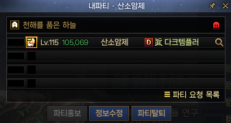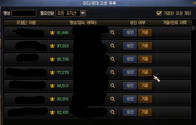 파티를 만들었을 때, 파티 신청 들어온 화면이나 파티창 우측 하단에 파티 요청 목록이 있습니다