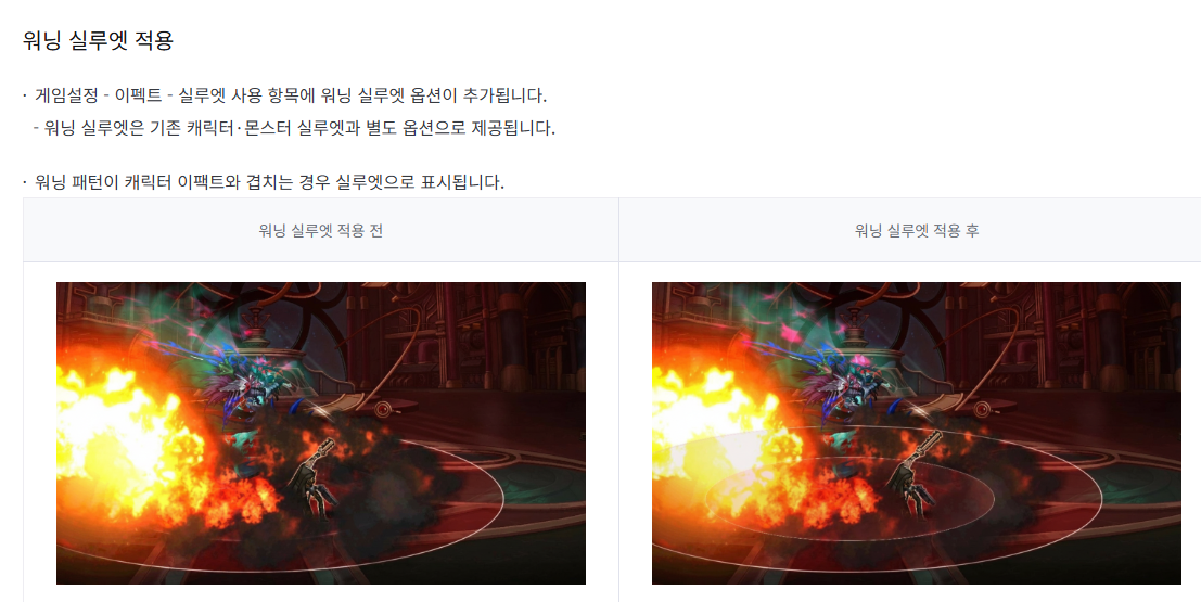 캐릭터의 스킬 이펙트로 몬스터의 공격 판정이 안보이는 경우를 줄여주는 효과입니다