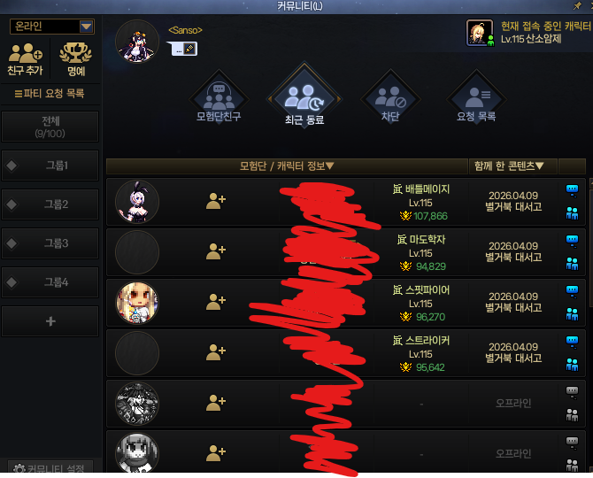자물쇠 아이콘은 4인 파티 하다가 누구 나가도 4인 피통으로 유지된다는 뜻