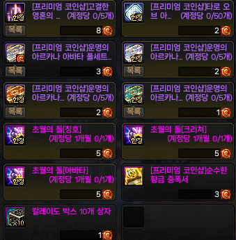 프리미엄 코인이 더 남는다면 무기아바타, 주또주나 여기서 얻을 수 있는 E/F타입 아바타 도 구매 가능합니다