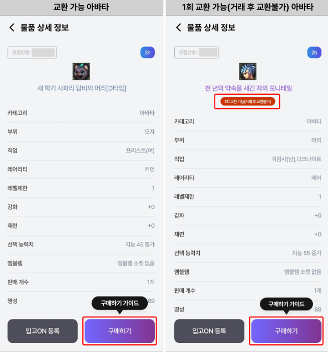 (교환가능)일반 레어아바타를 넣으면 (교환불가) 클론 레어 아바타로 바꿔줍니다.(자기 캐릭꺼만)