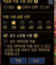 천해천 업데이트로 포션자동사용에 기능이 추가되었습니다