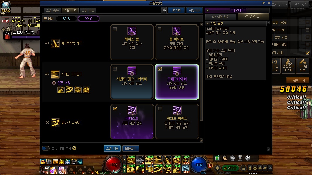 드랜만이 아니라 45제 스킬 자체가 스킬 포인트는 많이 잡아먹는데 쿨타임은 긴 스킬이라서 DPS적으로 떨어지는 스킬 레벨대기때문에