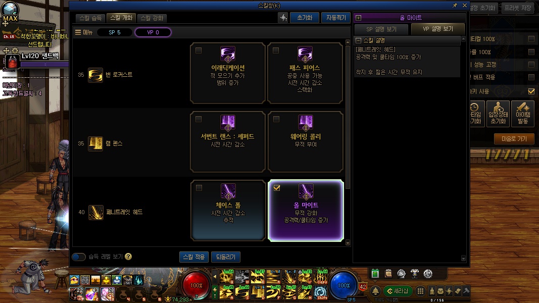 스킬 강화같은 경우는 자신의 쿨감 상황에 따라 적절하게 섞어주시면됩니다