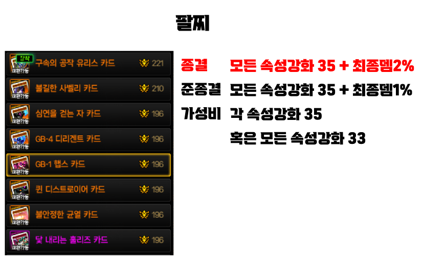 딜 쿨비가 좋지 않기때문에 전부 다 스킬 깡뎀으로 가시면 됩니다.