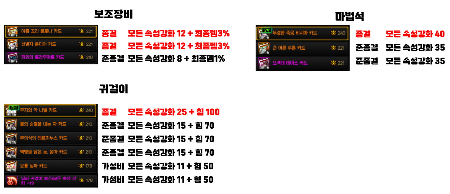 특수장비 교체 순서는 세트픽/고유픽 상관없이 마법석 > 귀걸이 > 보조장비 순서로 교체해주시면 되겠습니다.