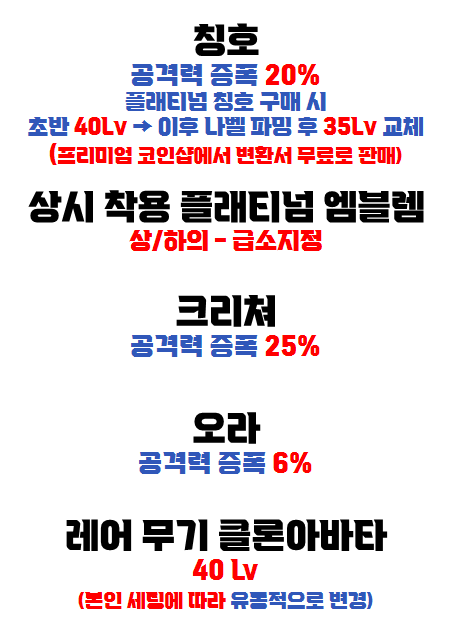 칭호, 크리쳐, 오라의 경우는 표기된 수치만 확인하셔서 구매하시면 되겠습니다.