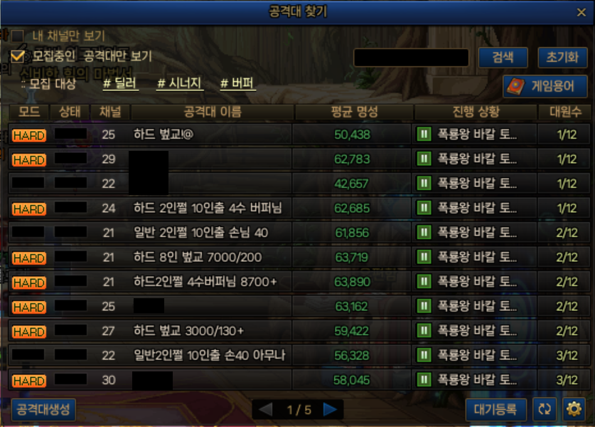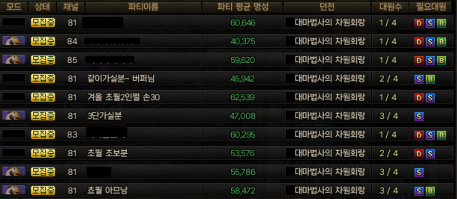 ※해당 이미지에서 보이는 대리던전 클리어 관련 파티는 클릭하기 전까지 익명성이 보장 되어서 스크린 샷으로 첨부해도 된다고 판단 되어 첨부를 하였습니다
