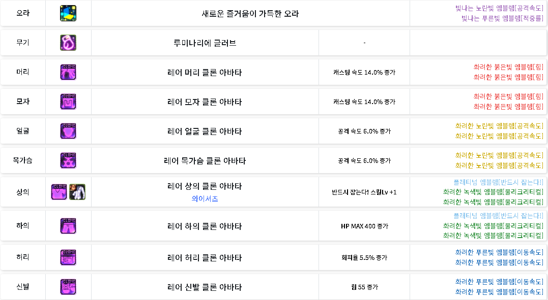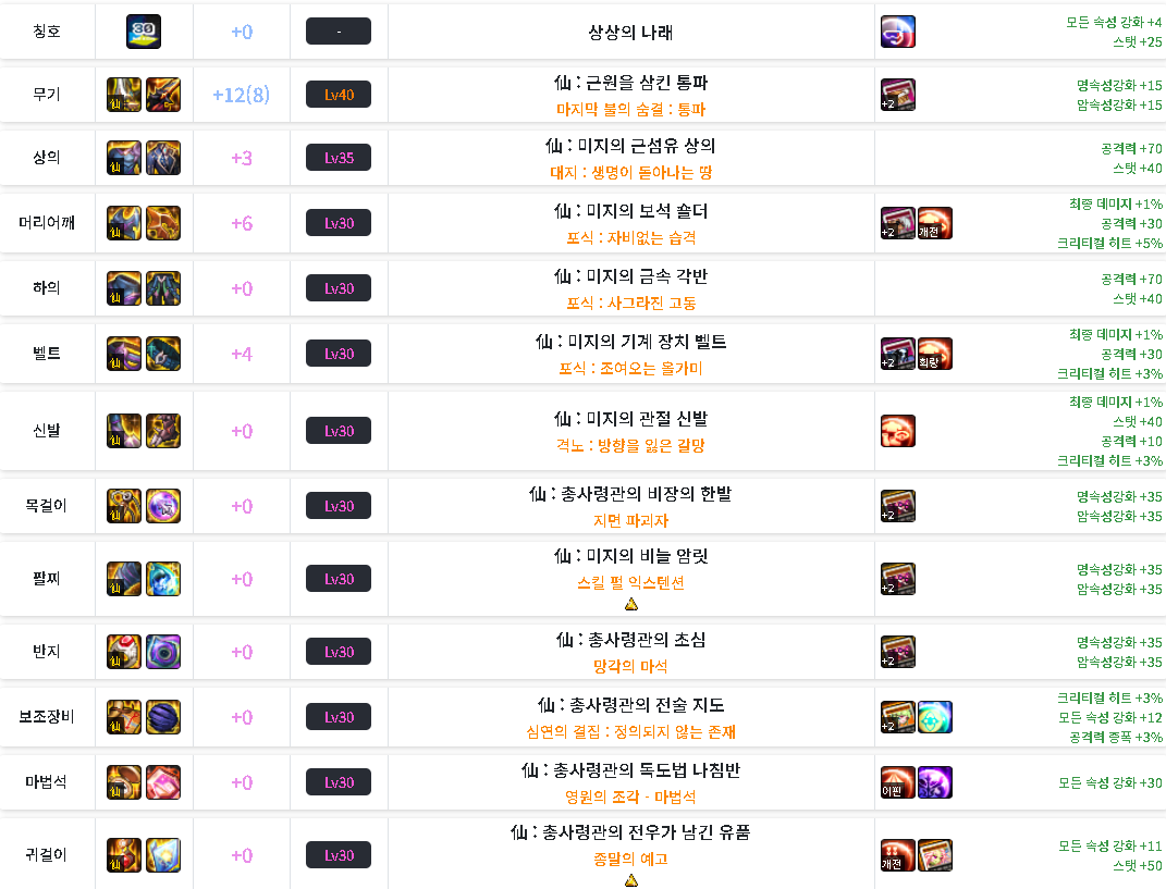 ps. 현재 찍어 놓은 보조 특성 및 장비 세팅입니다.
