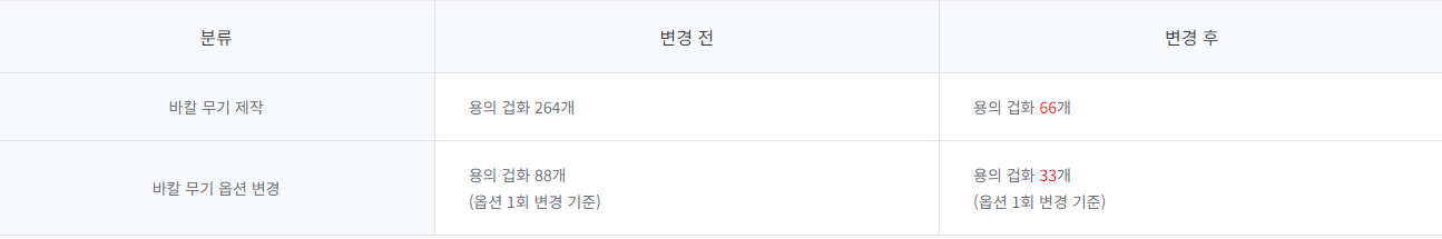 교불 오행, 메테오리아 드랍량을 줄이고 대신 계귀 재료 추가 등
