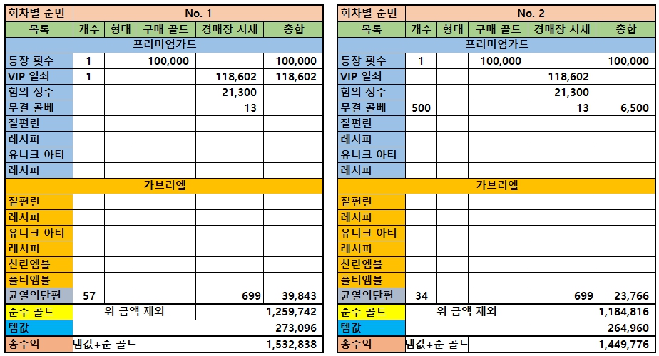 1,440만 골드 정도 버는데 여기서 프카나 가브가 파는거에 따라