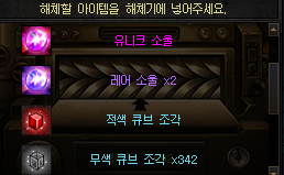 무큐가 부족하면 배럭 캐릭터로 기록실 돌아서 (구)에픽 장비 파밍하셔서 갈갈이 해도 어느정도는 나오니까 좋아요.