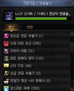 그중에 연금술사라는 전문직업을 잘 사용중입니다.