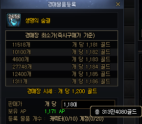 오른쪽 2번째 사진은 제가 모은 생명의 숨결을 경매장에 올리면 저정도의 금액이 나온다는 것을 알 수 있습니다! 참고 사진입니다!!