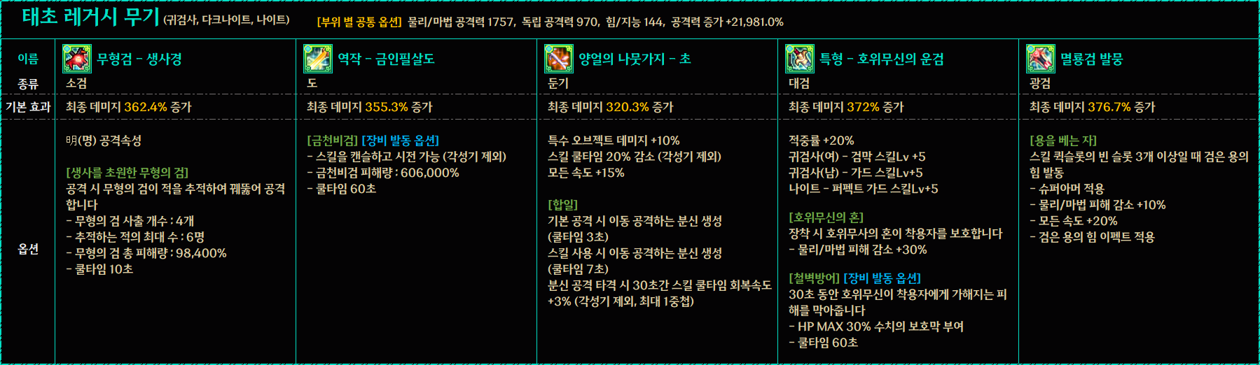 보기 전직 1차 각성 2차 각성 전체 전직 전체 전직 귀검사(남) 웨펀마스터 소울브링어 버서커 아수라 검귀 귀검사(여) 소드마스터 다크템플러 데몬슬레이어 베가본드 블레이드 격투가(남) 남넨마스터 남스트라이커 남스트리트파이터 남그래플러 격투가(여) 여넨마스터 여스트라이커 여스트리트파이터 여그래플러 거너(남) 남레인저 남런처 남메카닉 남스핏파이어 어썰트 거너(여) 여레인저 여런처 여메카닉 여스핏파이어 패러메딕 마법사(남) 엘레멘탈 바머 빙결사 블러드 메이지 스위프트 마스터 디멘션워커 마법사(여) 엘레멘탈 마스터 소환사 배틀메이지 마도학자 인챈트리스 프리스트(남) 남크루세이더 인파이터 퇴마사 어벤저 프리스트(여) 여크루세이더 이단심판관 무녀 미스트리스 도적 로그 사령술사 쿠노이치 섀도우댄서 나이트 엘븐나이트 카오스 팔라딘 드래곤나이트 마창사 뱅가드 듀얼리스트 드래고니안 랜서 다크 랜서 총검사 히트맨 요원 트러블 슈터 스페셜리스트 아처 뮤즈 트래블러 헌터 비질란테 키메라 다크나이트 다크나이트 크리에이터 크리에이터 공통 공통