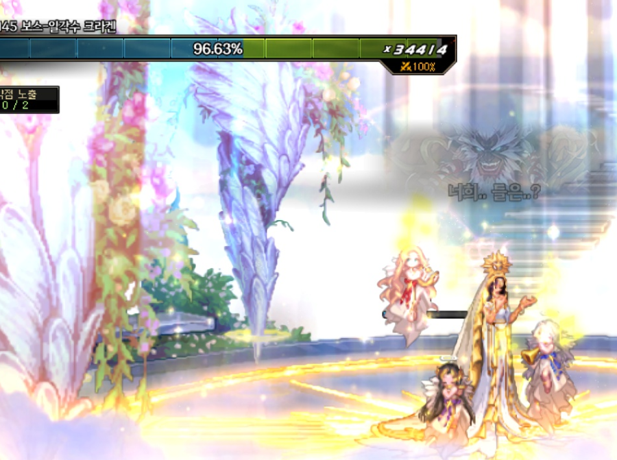 일각수 크라켄의 패턴은 '약점' 표시를 평타로 때리고, 노란 촉수는 크래시머에게 맞도록 해서 크래시머가 크라켄을 붙들도록 해야 합니다.