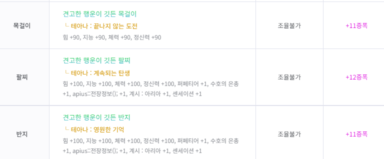 저는 악세 3부위가 11증 이상이라 테아나 3종을 쓰고 있지만