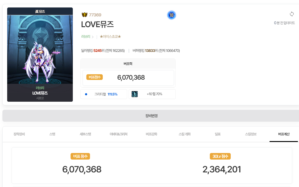 남크루세이더 여크루세이더 인챈트리스 뮤즈, 버퍼 4직업 전부와 그 중에 뮤즈를 3캐릭(LOVE뮤즈/Lovely뮤즈/뮤즈야비트줘) 키우는 유저로서