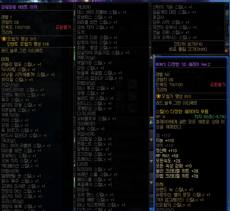명성 올려주는 세리아 펫을 껴야하나요? 아니면 버프레벨 올려주는 8비트 아처 펫을 껴야하나요?