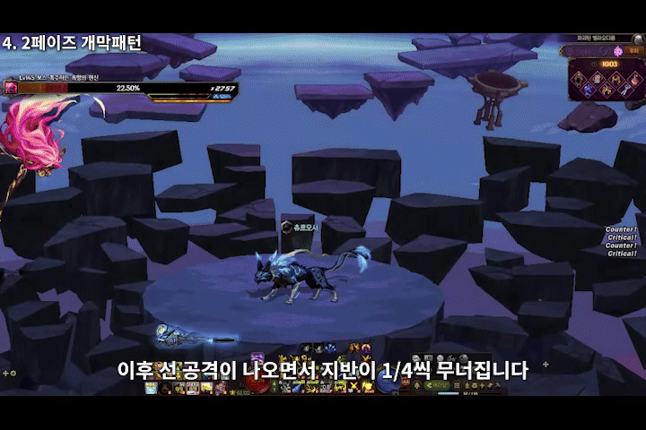 카운터 공격이 끝나면 이후 선 공격이 나오면서 지반이 1/4씩 무너집니다