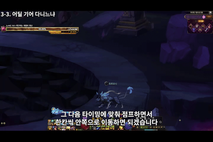 그다음 타이밍에 맞춰 점프해 한칸씩 중앙으로 이동해주세요