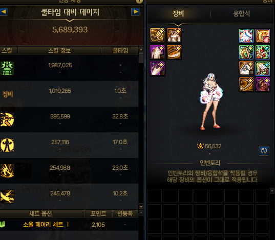 저는 장비 시뮬 쿨타임 대비 데미지 560만 나와도 강림 1페가 안밀리네요... ㅎㅎ;