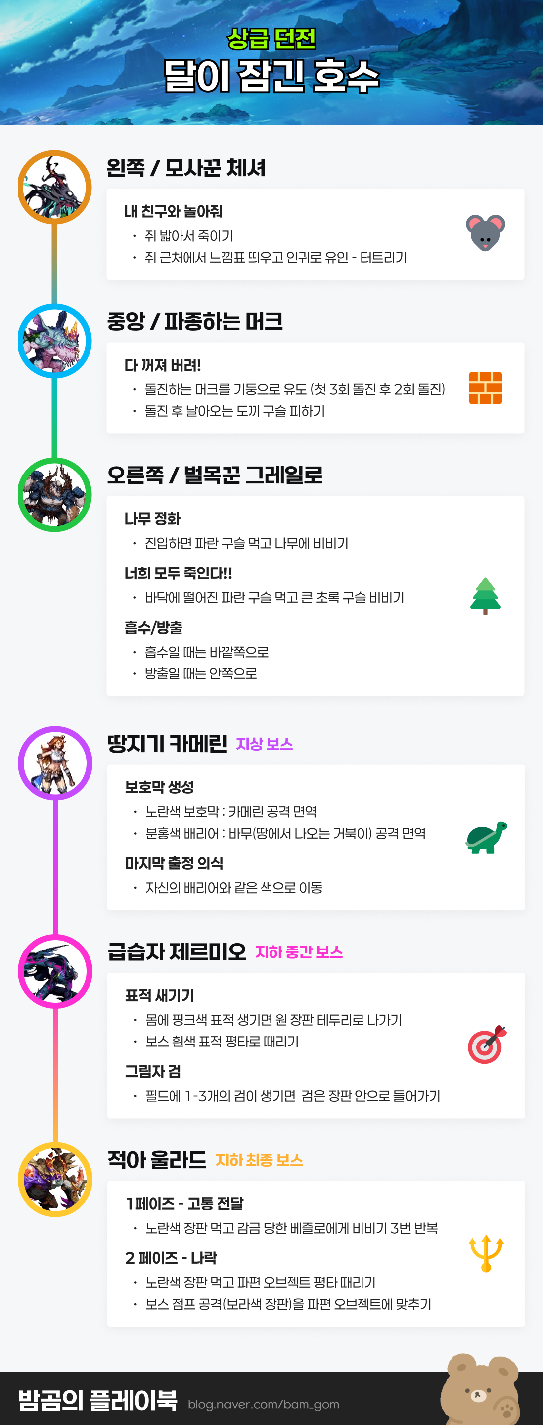 이번에 명성을 올려서 달이 잠긴 호수 상급 던전을 처음 가봤는데 공략 예습이 필수더라고요!