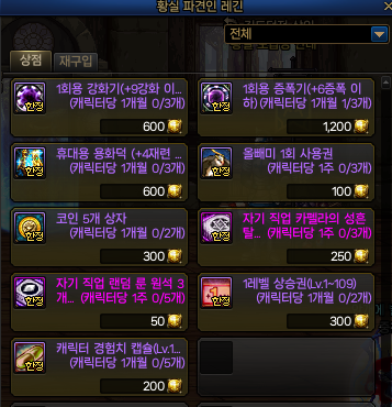 길드 주화에 따라 최대 기간 구매를 누르시면 한번에 더많은 구매가 가능합니다.