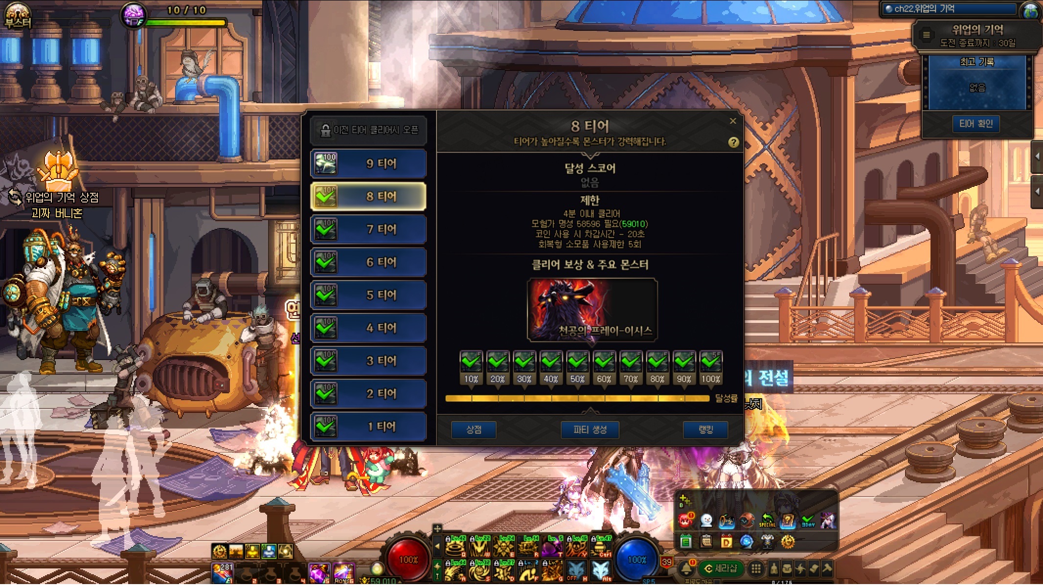 또한 상위 티어 클리어시 하위 티어 보상을 전부 획득 가능하다.