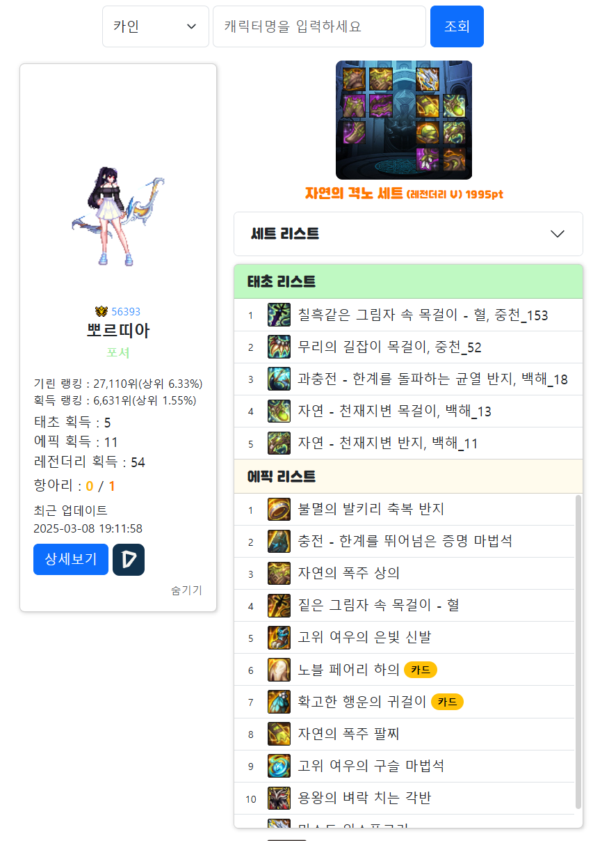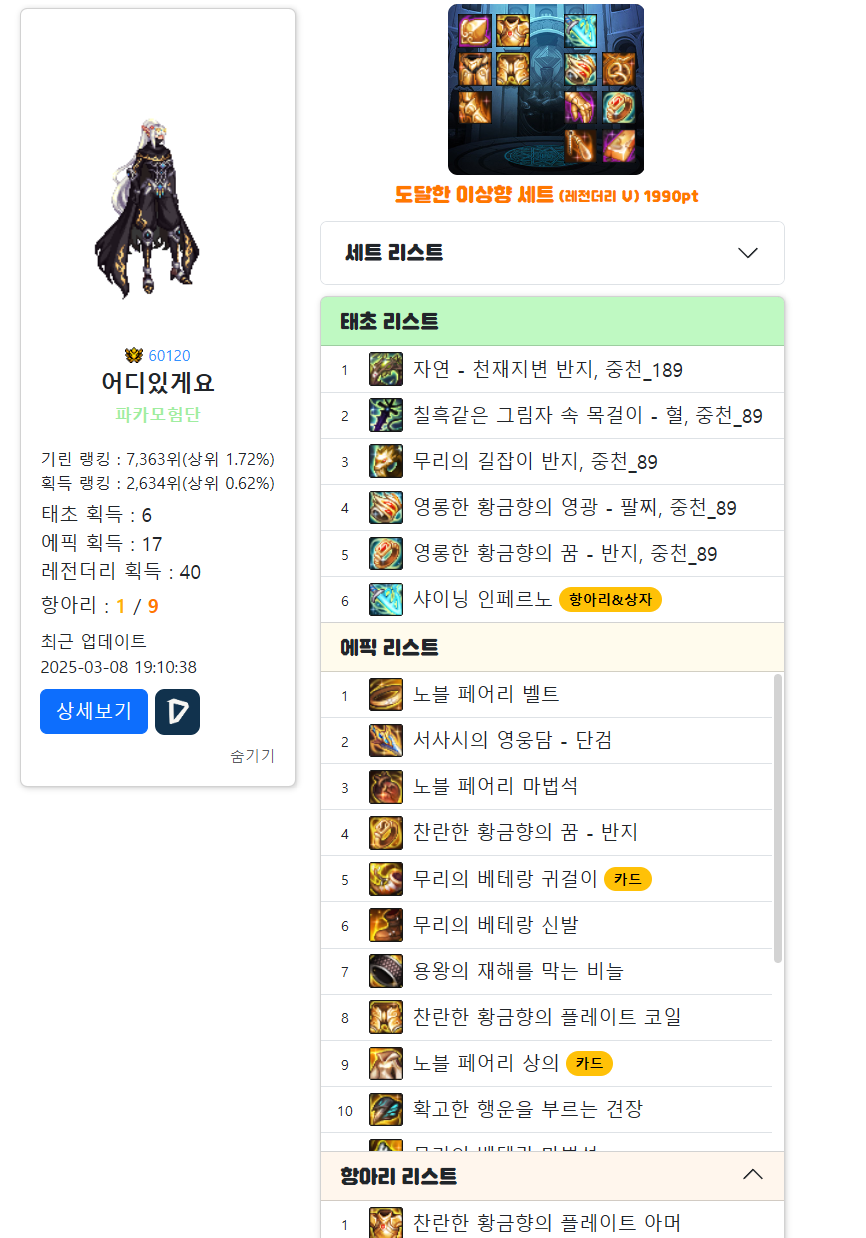 저렇게 잘먹는게 말이 되나 싶은데, 저렇게 잘먹어도 7,363 위면 더 잘먹은 캐릭터가 7300개는 된다는 소리니까.. 생각할수록 어이없네