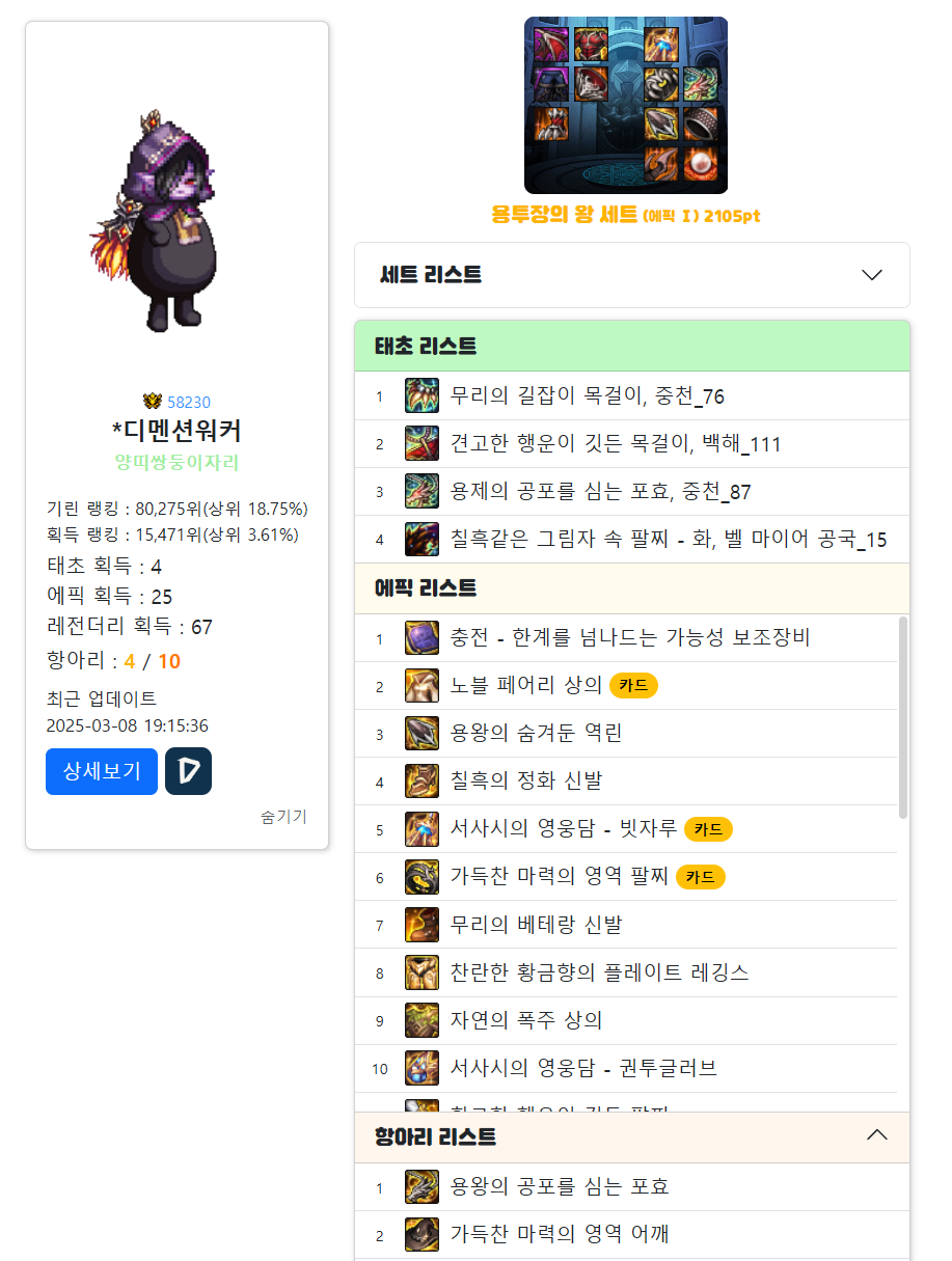 기린 랭킹은 보니까 헬 돌린 판수도 영향 받는듯? 내가 뽀르티아랑 비교하면 에픽은 같고 태초는 1개 더 많은데 내가 기린 랭킹 더 낮은거보니까....