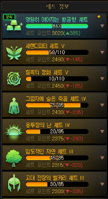 검마찹쌀 님이 작성해 주신 세트별 계수표 (링크)