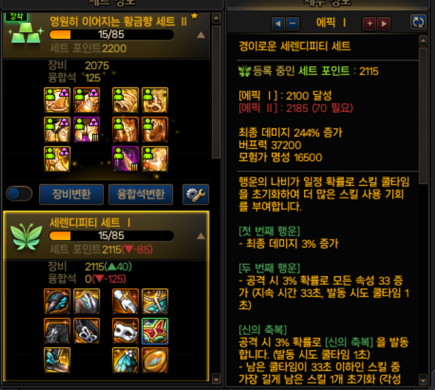 일단 융합석까지만 해줘도 지금 황금향 셋포인 에픽2는 간단히 넘고 그다음 3조율만 해줘도 에픽 3까지 갈수있어서