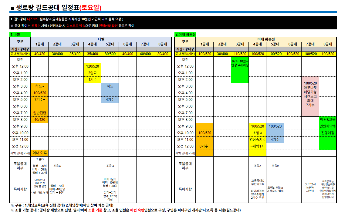 → 생로랑 길드 연공 약 50기수+ 8공대이상 연공 운영