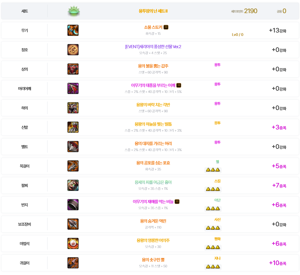 장비 현황은 이렇습니다.. 던담 랭킹 딜은 19억이고 샌드백은 3억1천쯤 됩니다.