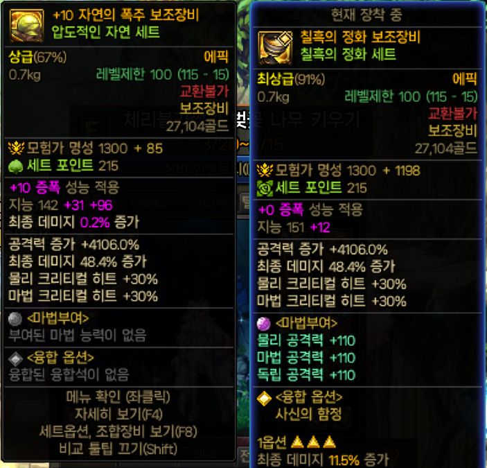 왼쪽 장비에 10증폭을 제가 쓰는 장비로 옮길 수 있나요?