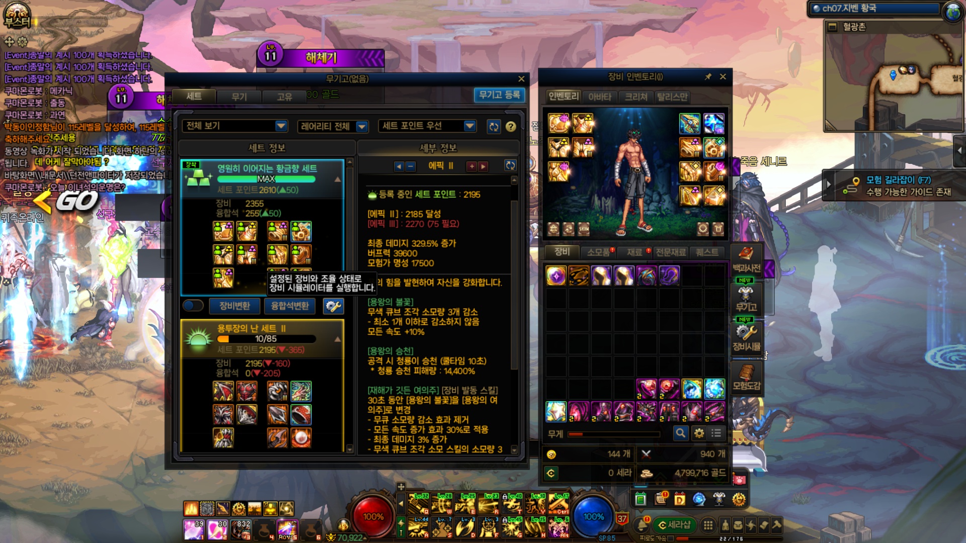 [남레인저] 용투2셋 황금1셋 고민입니다! 황금10증폭인데 용투로 교체했을시 용투랑 차이많이나나요? (9)