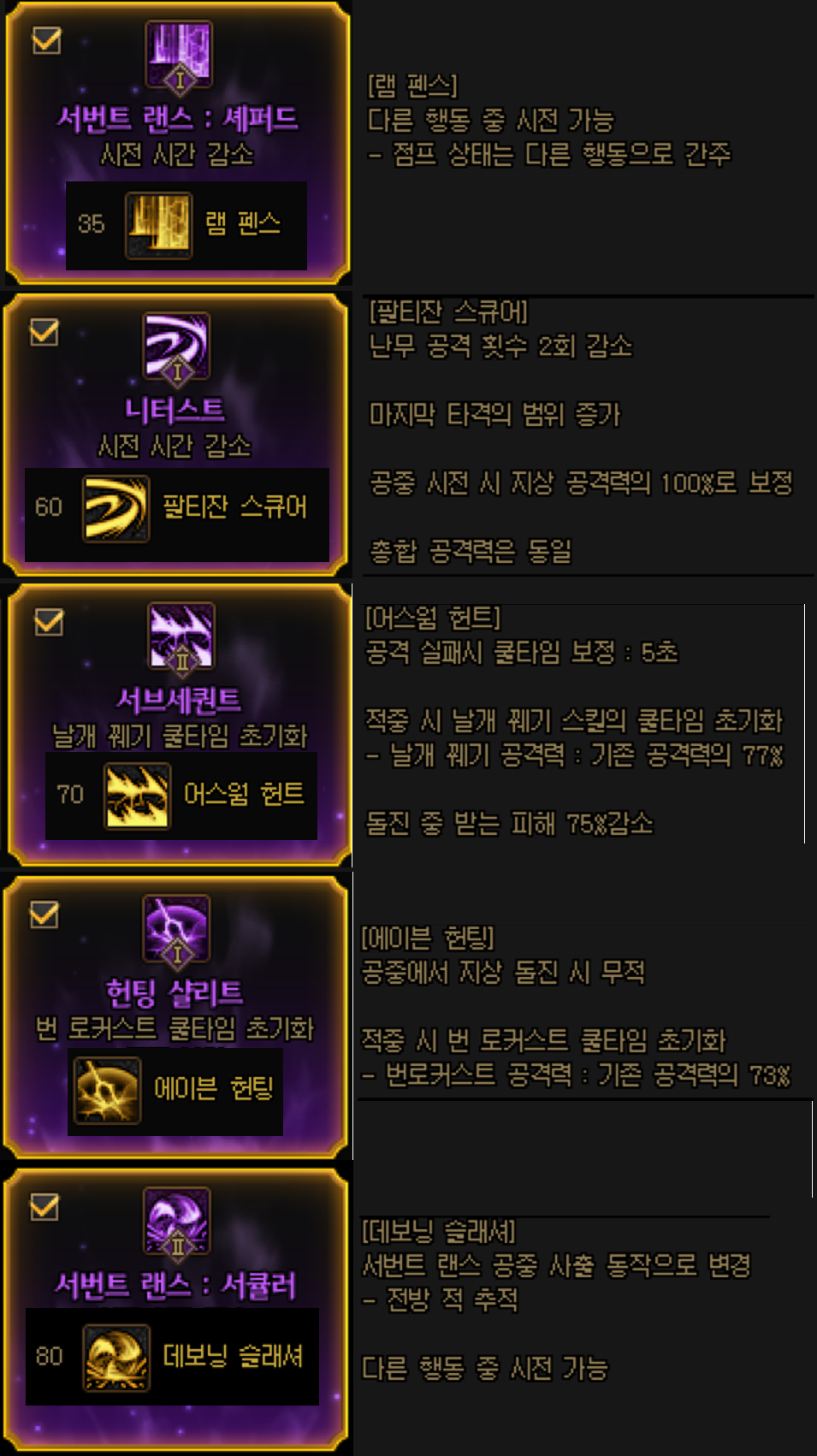 그렇게 모든 스킬의 구조를 서번트화* 해버리면 평타밖에 칠게 없기 때문에 어스웜 헌트와 에이븐 헌팅은 각각 번로커스트 날개꿰기 쿨초에 투자했습니다!!