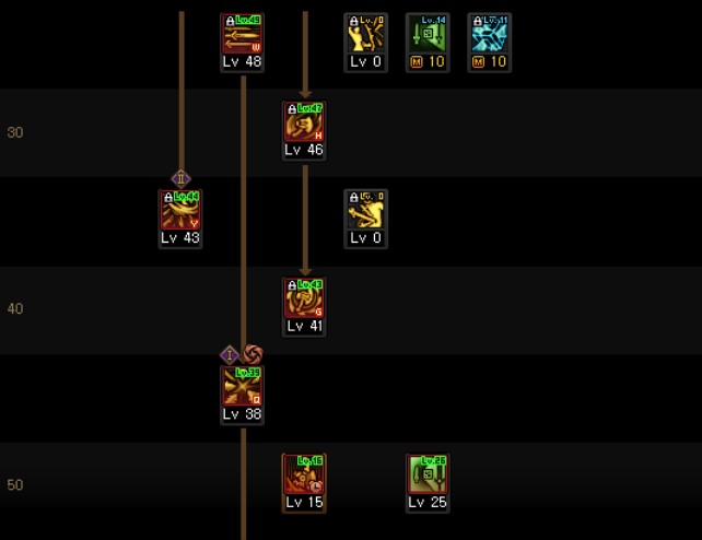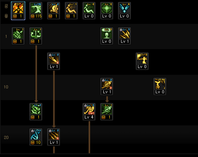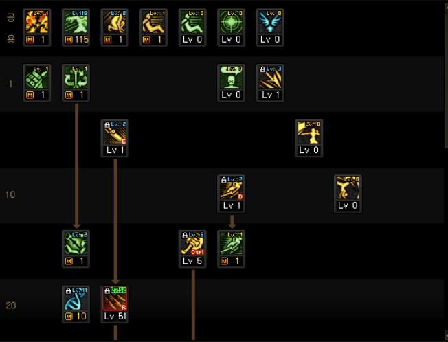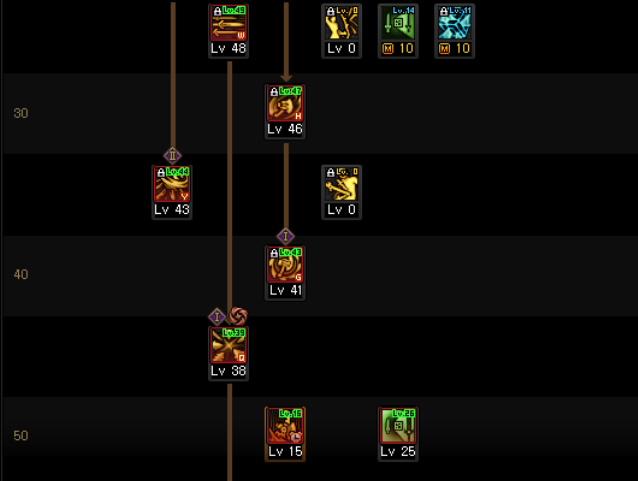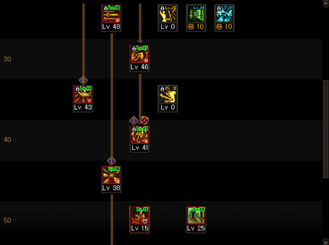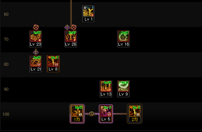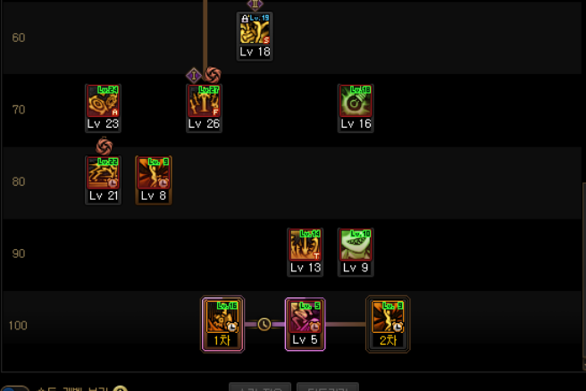 창조반지, 베누스 5고유, 레거시 무기 쿨감을 모두 맞췄을 때 최고의 데미지 효율을 내는 스킬트리입니다. 한두개 부족해도 괜찮습니다.