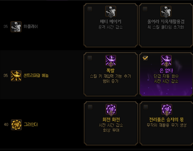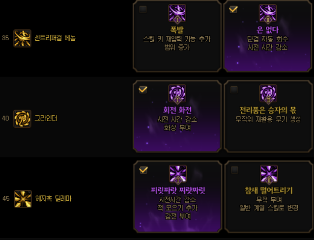 무기줍기 쿨감이 버프를 먹어 기본 쿨감 15%로도 상급기 2회를 무난하게 넣을 수 있게 되었습니다.