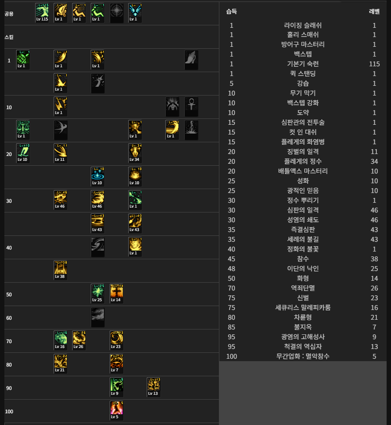 스킬은 이렇게 찍습니다. 물리 크리티컬이 부족할 경우 징벌의 일격의 스포를 빼서 찍으시면 됩니다.