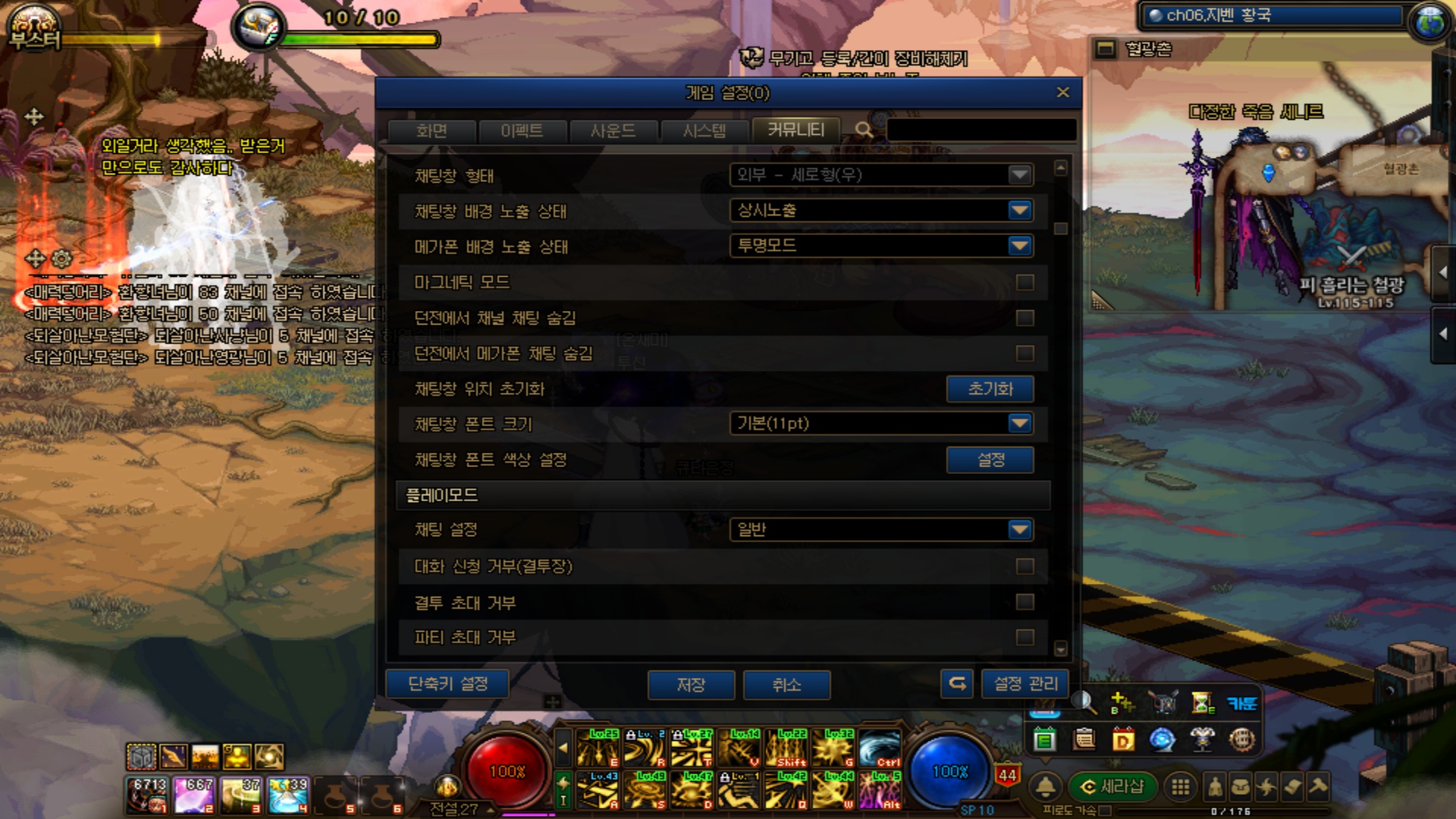 2. esc누르고  게임설정 > 커뮤니티  들어가준다