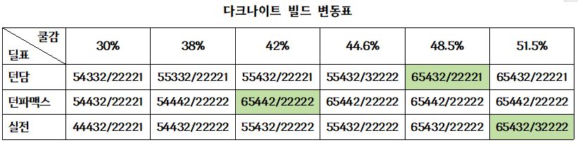 즉, 다크나이트는 최소 30%의 쿨타임 감소만 있으면 됩니다.