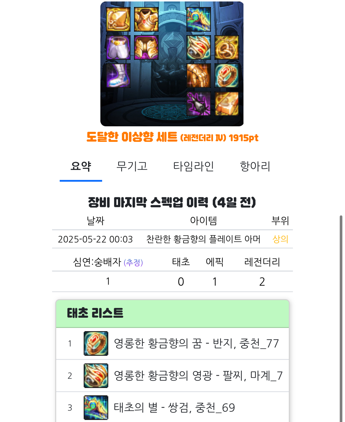 무리셋트로 상던만 숙제돌리던 로그 부캐가 이틀만에