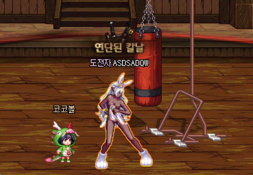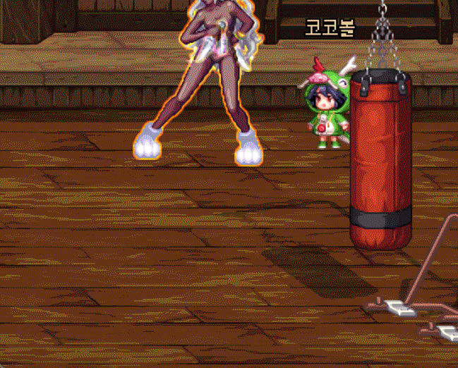 분명 샌드백의 정면을 향해 파이널 디스트럭션을 사용했으나 백어택 판정이 적용(정면 파디는 어퍼컷날림)되고 이후 캐릭터가 반투명 상태(100% 백어택 상태)가 유지되어있습니다.