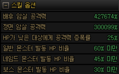 기존 섀도우댄서의 탈리스만 퍼펙트 어쌔신과 동일한 옵션입니다.