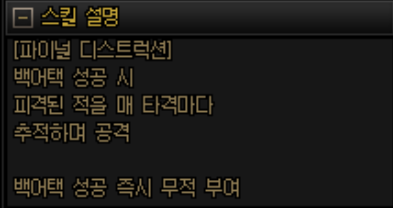 다만 파이널 디스트럭션 피니쉬가 역경직이 장난 아닌 스킬인데 피니쉬 속도 증가는 꽤 체감됩니다.